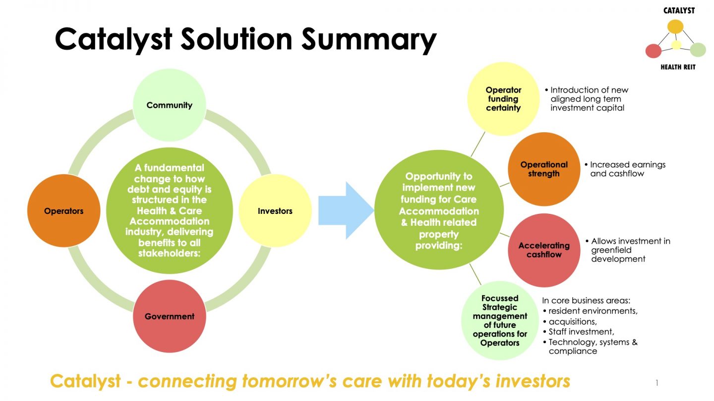 Catalyst is funded by Australian Industry Superannuation, which is an excellent fit for the Australian Health & Care accommodation sectors. Catalyst can provide partnership solutions across : hospitals, allied health, residential aged care, fully serviced apartments, specialist disability accommodation and other medical related property.